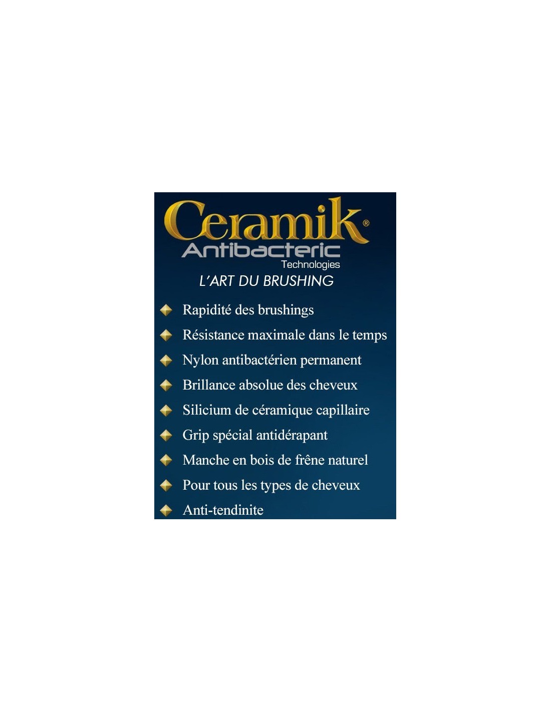 - The silk composition of the new CERAMIK ANTIBACTERIC brushes includes a special antibacterial component, the same one that is used for the manufacture of fabrics for operating rooms. This component is able to block, instead of carrying them, germs and bacteria harmful to health such as Staphylococcus aureus, cause of the most common infections of our body, Ceramik Antibacteric silk neutralizes this risk by 99.9%. Silk (nylon 66) is also antistatic, resistant to high heat