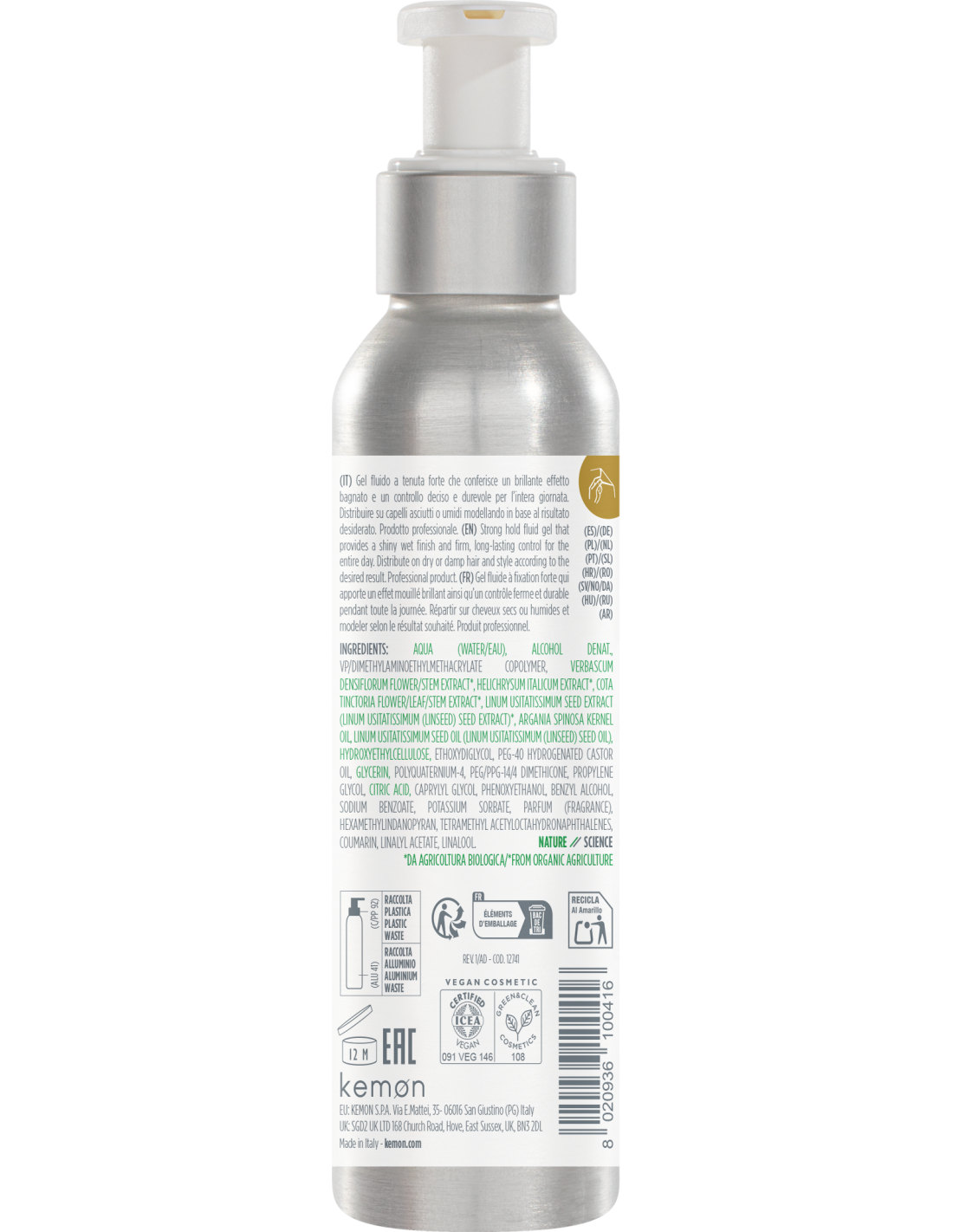 Les ingrédients identifiés de couleur verts sont d'origines naturels & extraits de plantes sont issus de l'agriculture biologique (Nature).