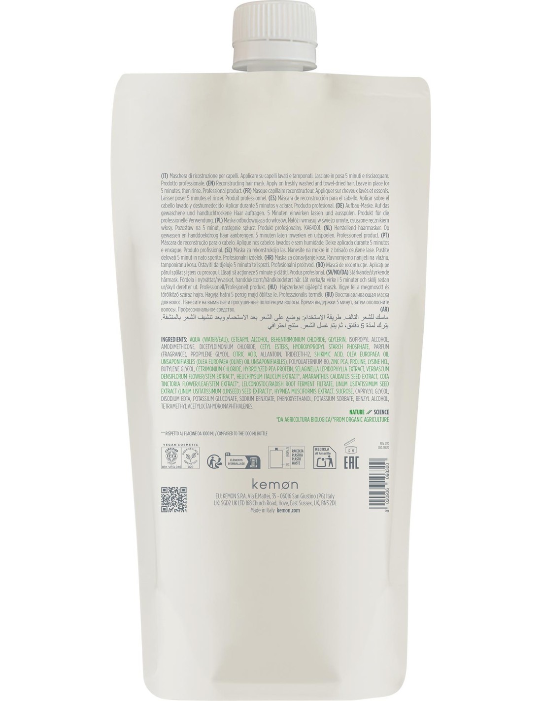Masque reconstructeur Nuova Fibra 1000 ml certifie 91 % d'ingrédients d'origines naturels