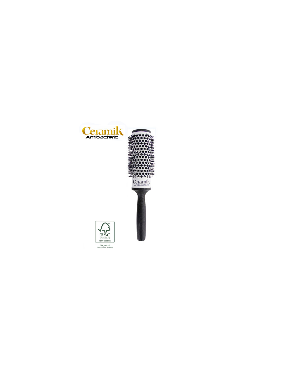 - Application Céramique brevetée : Sur toutes les brosses CERAMIK ANTIBACTERIC, une couche de silicium de céramique d'une épaisseur de 8/10 microns est appliquée grâce à un procédé breveté de « modelage ». Elle a un aspect de couleur gris clair et son toucher est poreux.