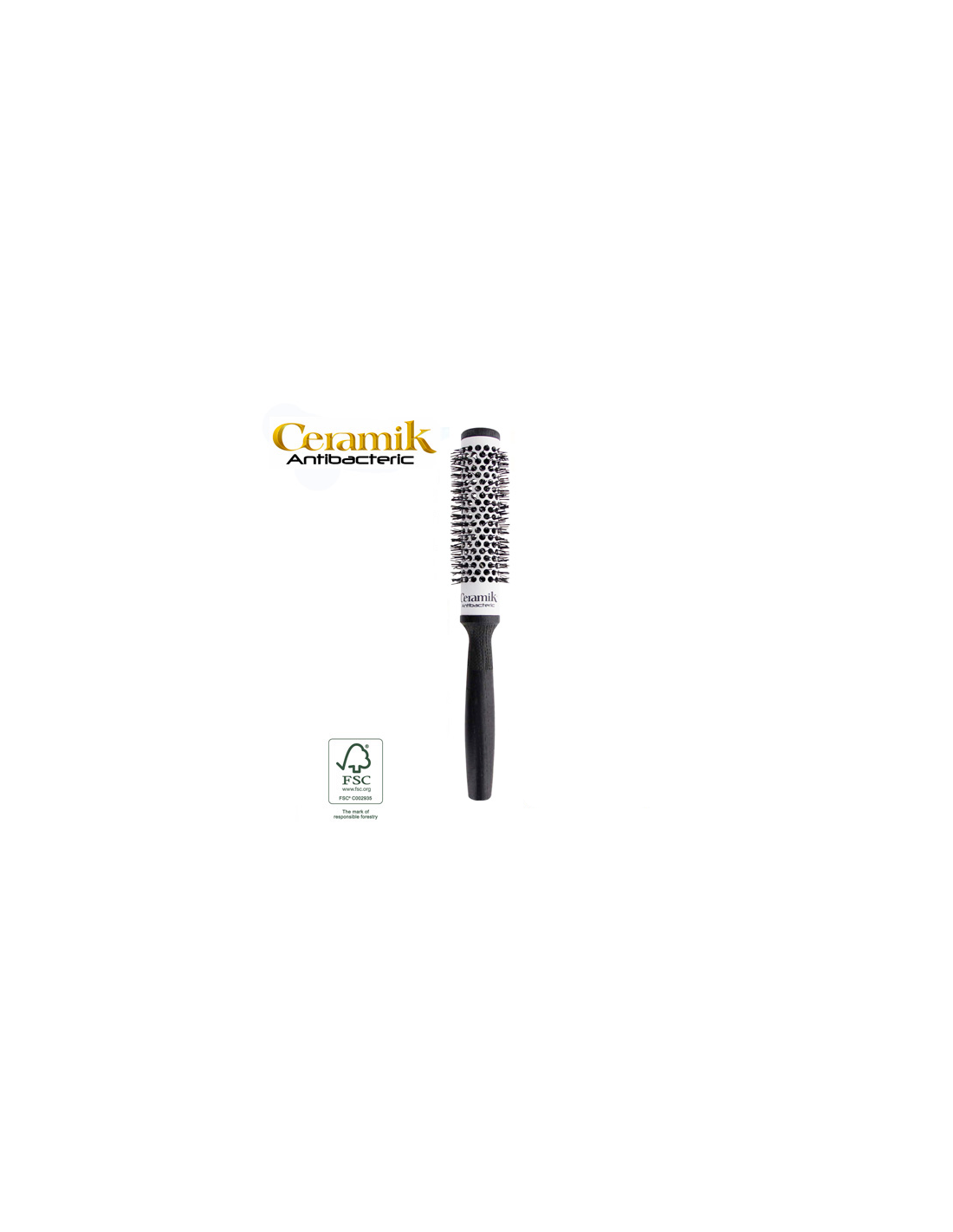 - Application Céramique brevetée : Sur toutes les brosses CERAMIK ANTIBACTERIC, une couche de silicium de céramique d'une épaisseur de 8/10 microns est appliquée grâce à un procédé breveté de « modelage ». Elle a un aspect de couleur gris clair et son toucher est poreux.