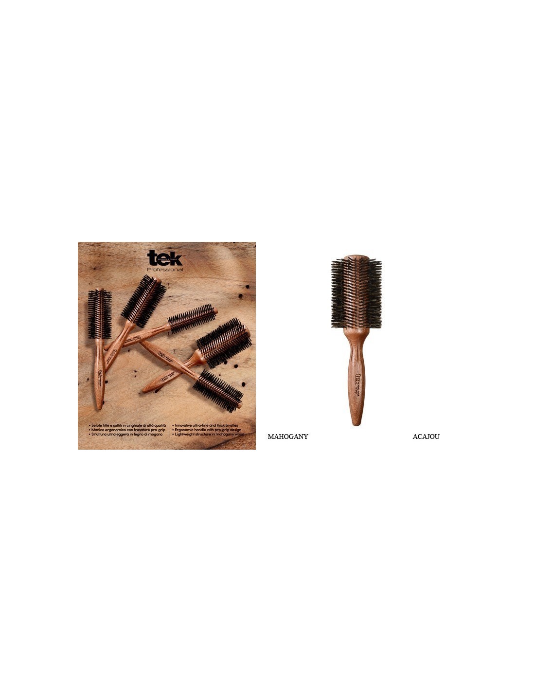 Une combinaison de matières premières de haute qualité, un design ergonomique et une résistance aux températures élevées: la nouvelle brosse ronde en bois d' Acajou de TEK Professionnels.